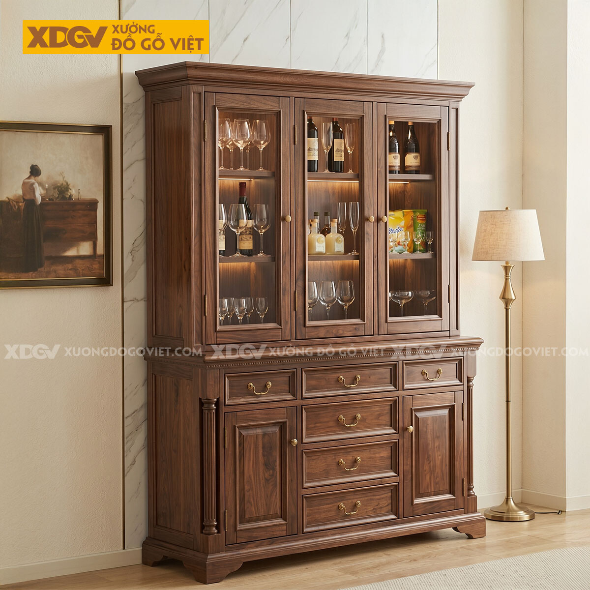 Tủ Rượu Gỗ Óc Chó Phong Cách Châu Âu Tân Cổ Điển Sang Trọng