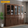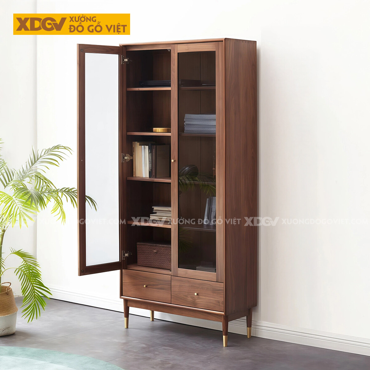 Tủ Để Sách Gỗ Óc Chó Phối Cánh Kính Kèm Tay Nắm Âm Tinh Tế