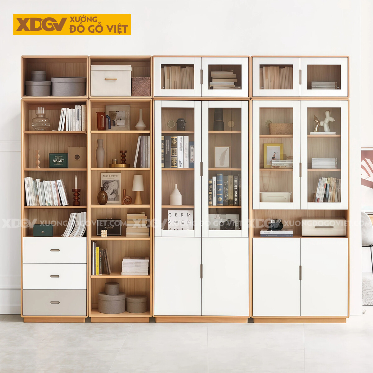 Mẫu Tủ Sách Văn Phòng Gỗ Sồi Phối Cánh Kính Kết Hợp Ngăn...