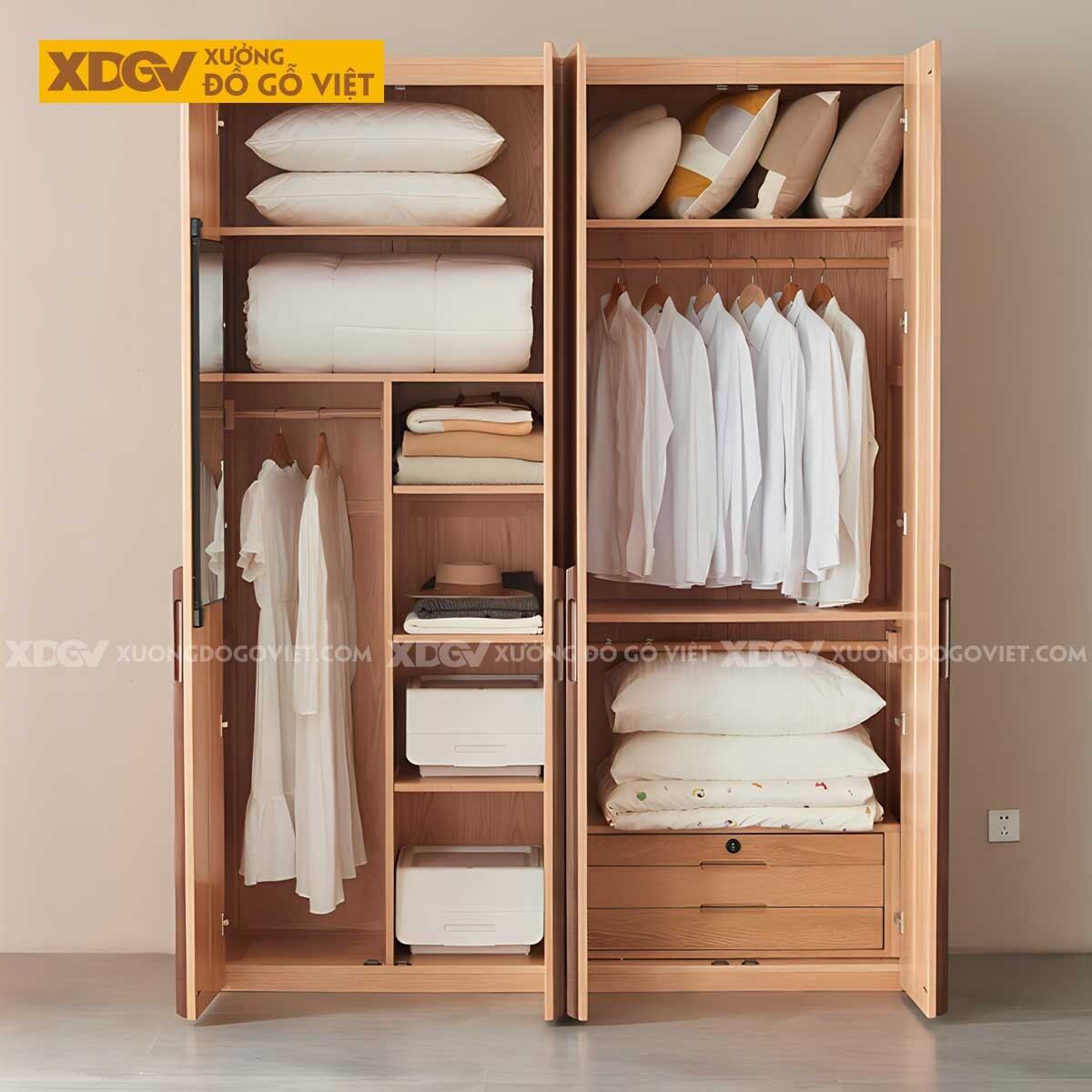 Tủ Quần Áo Gỗ Sồi Kịch Trần 6 Buồng Không Gian Lưu Trữ Lớn